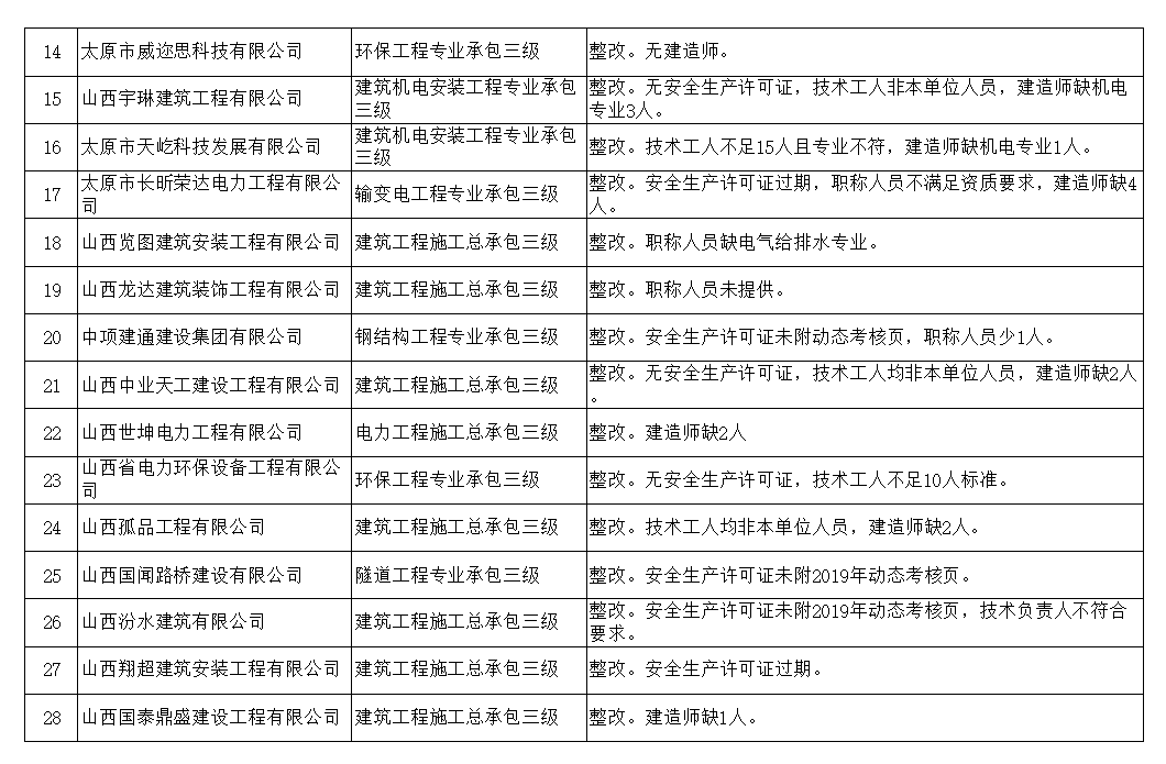 請需整改的企業(yè)于2020年12月25日前,將整改資料報(bào)送至市住建局建管科101室,重新核定核查結(jié)論。