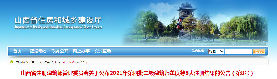 根據(jù)《注冊建筑師條例實(shí)施細(xì)則》(建設(shè)部令第167號)的規(guī)定,經(jīng)審核,董慶等8人符合規(guī)定條件,準(zhǔn)予注冊。